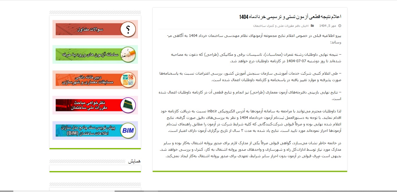 | اعلام نتایج آزمون نظام مهندسی خرداد 1404 |