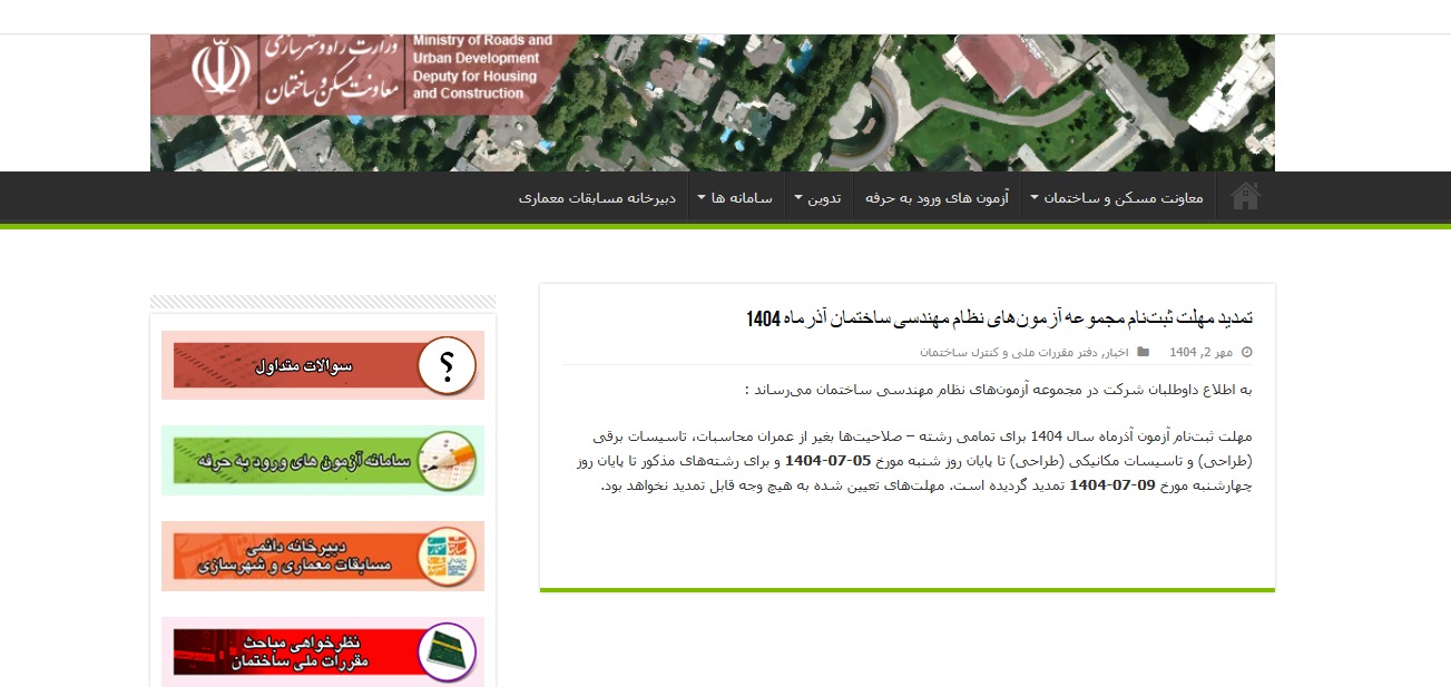 اطلاعیه تمدید مهلت ثبتنام مجموعه آزمونهای نظام مهندسی ساختمان خرداد ۱۴۰۴